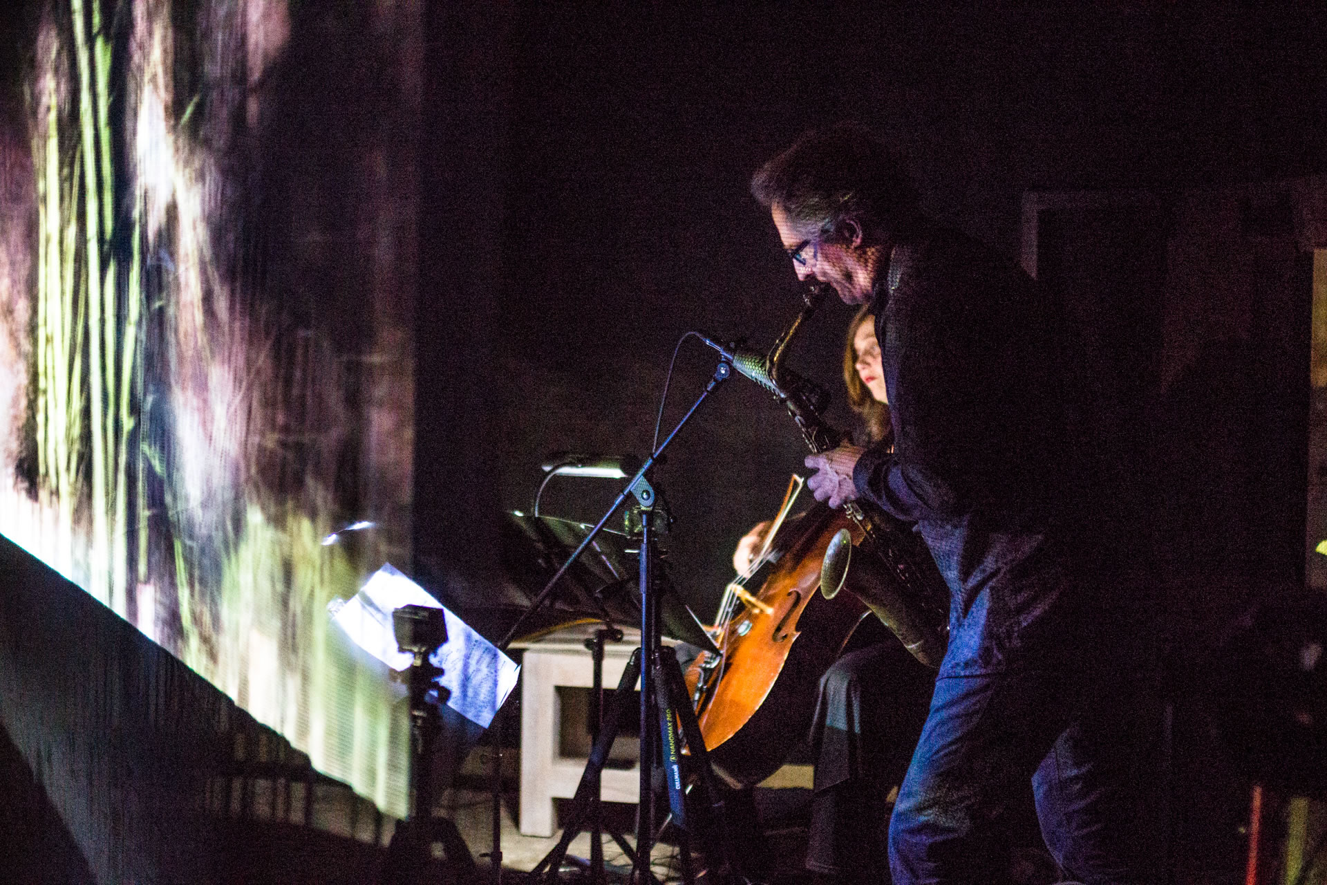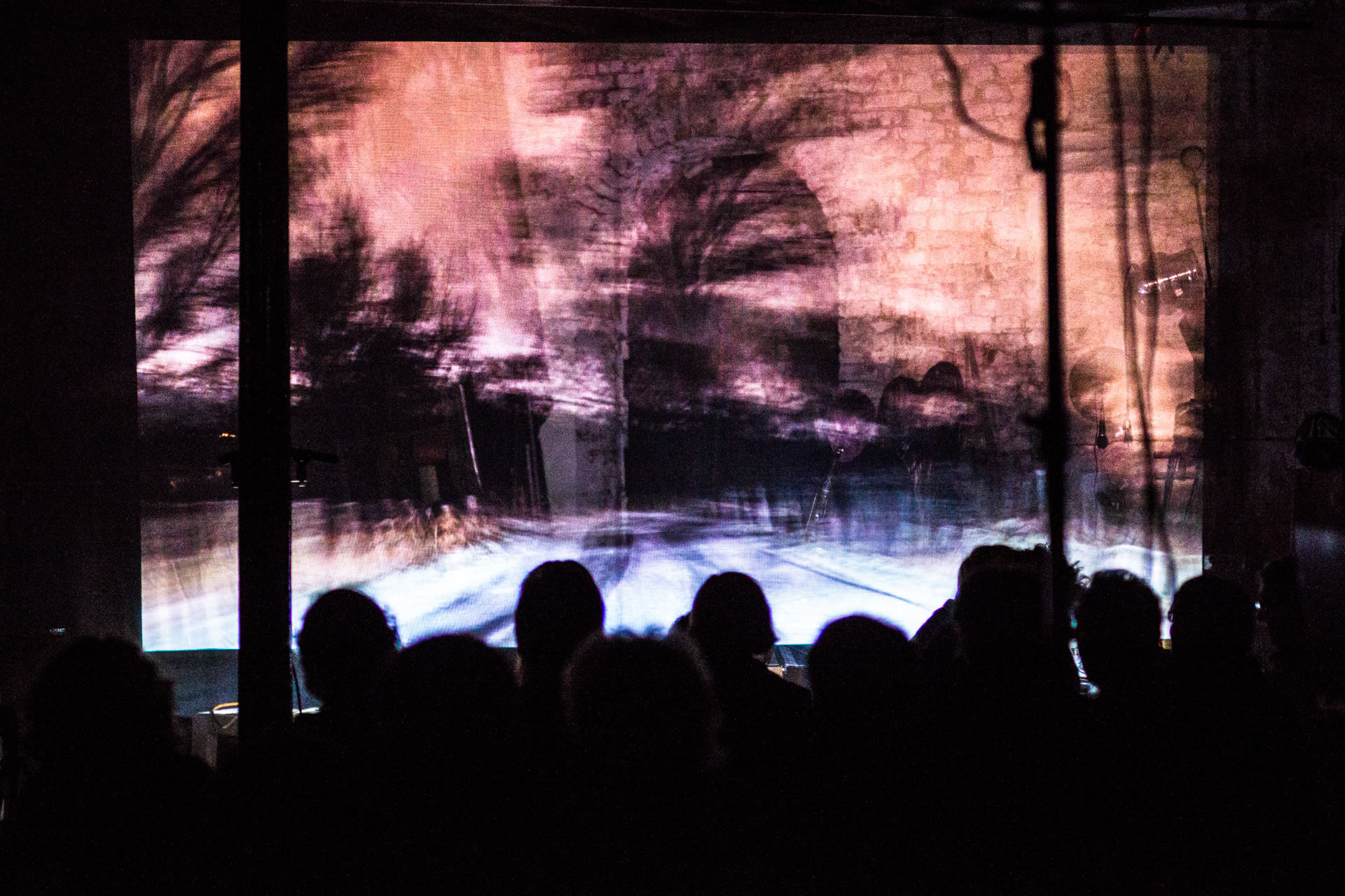 Die geheimnisvoll verschwommenen Bilder zweier Vollmondnächte werden dazu auf – und durch – eine Gaze-Leinwand projiziert und beleuchten mit wechselnden Lichteffekten die dahinter spielenden Musiker.