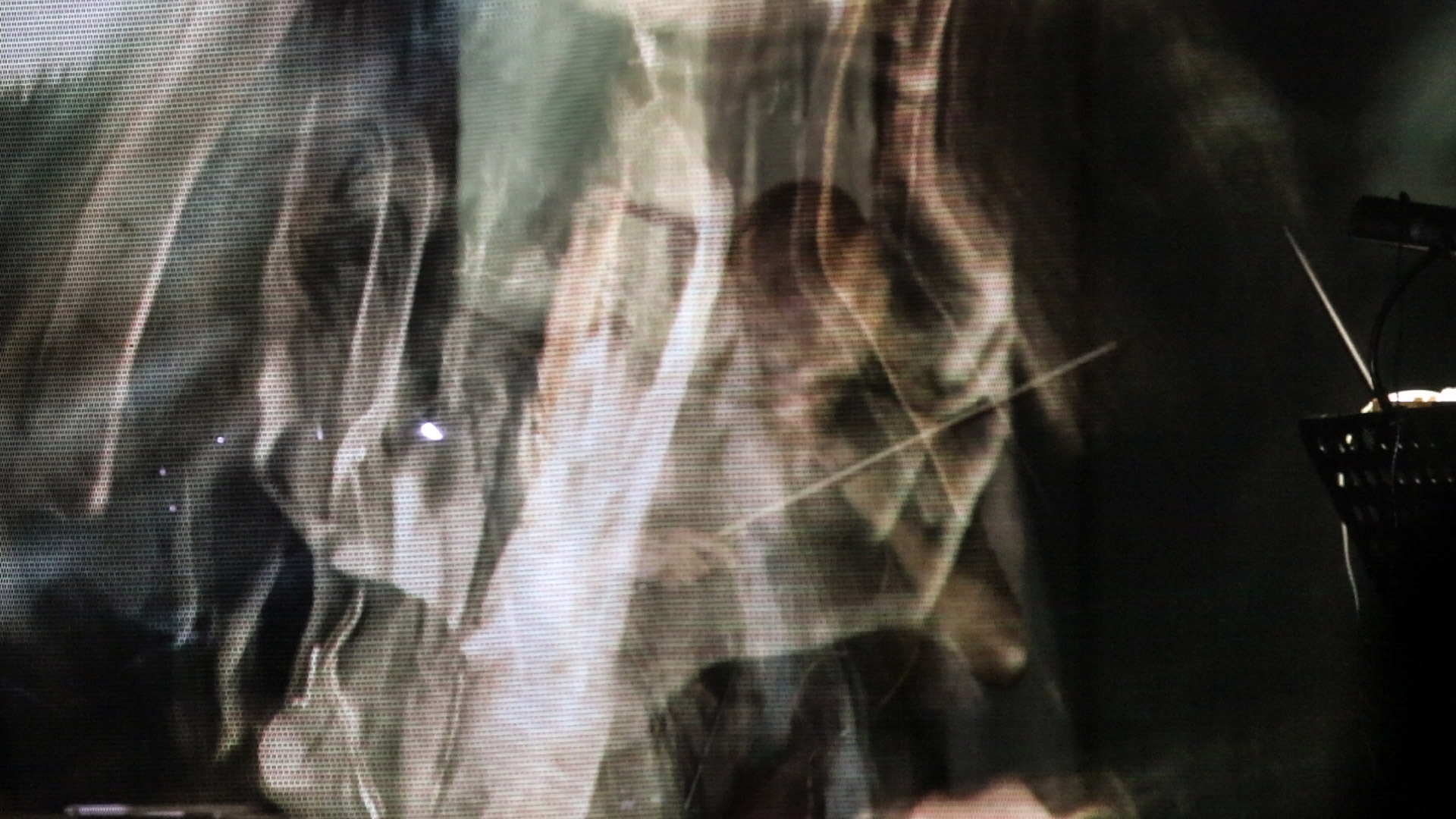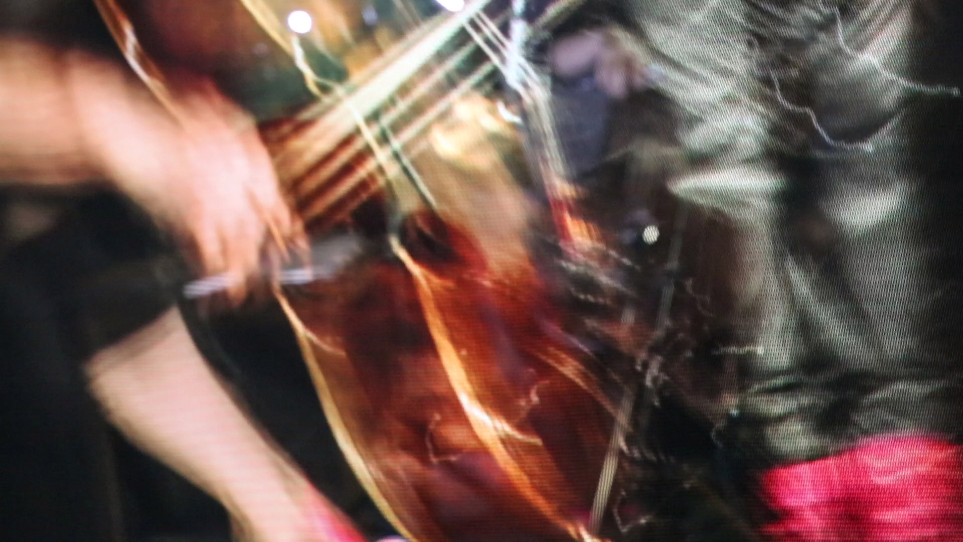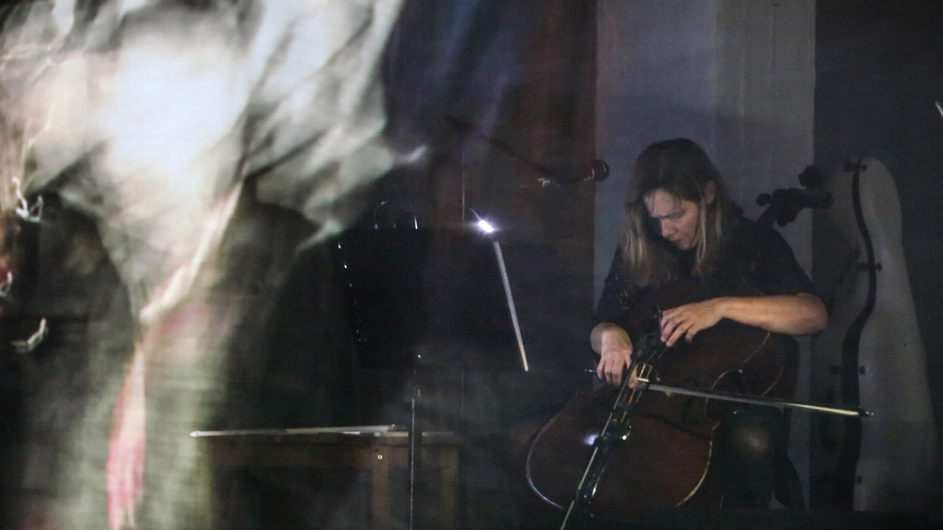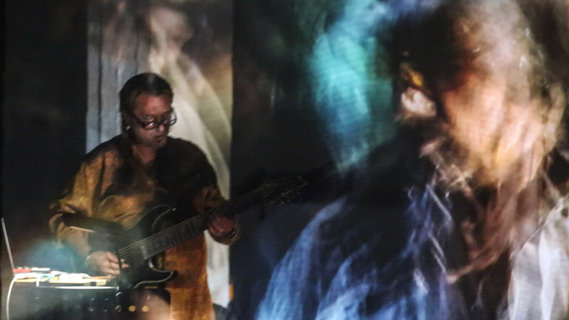 Konzert mit Marei Seuthe, Violoncello, Stimme und Singende Säge; Phil Reptil, Elektrogitarre und Elektrik; Peter Hölscher, Liquid Image »Gertrud«. Unser Part begann um 21.oo Uhr. Zuvor spielte nämlich noch Albrecht Maurer, Viola und Theo Jörgensmann, Klarinette, deren Sounds von Phil remixt wurden.