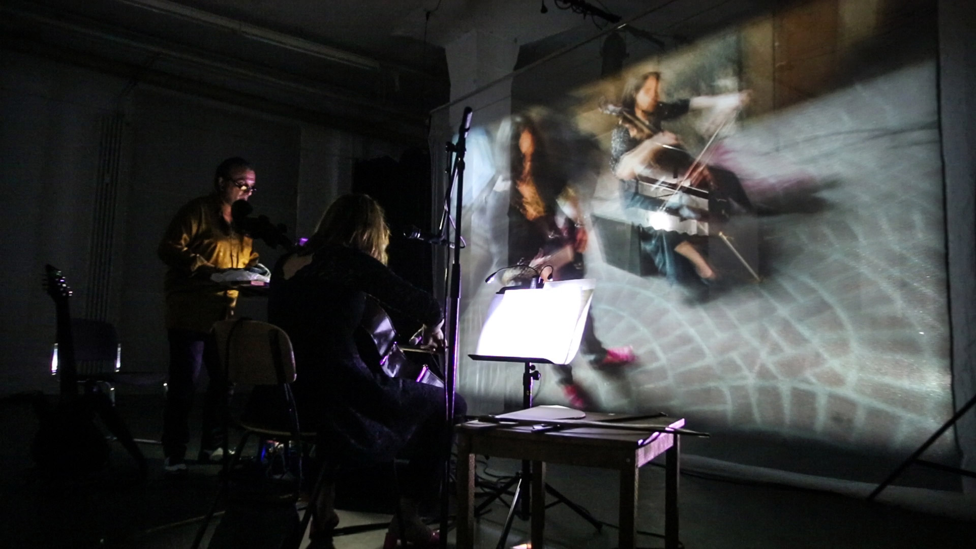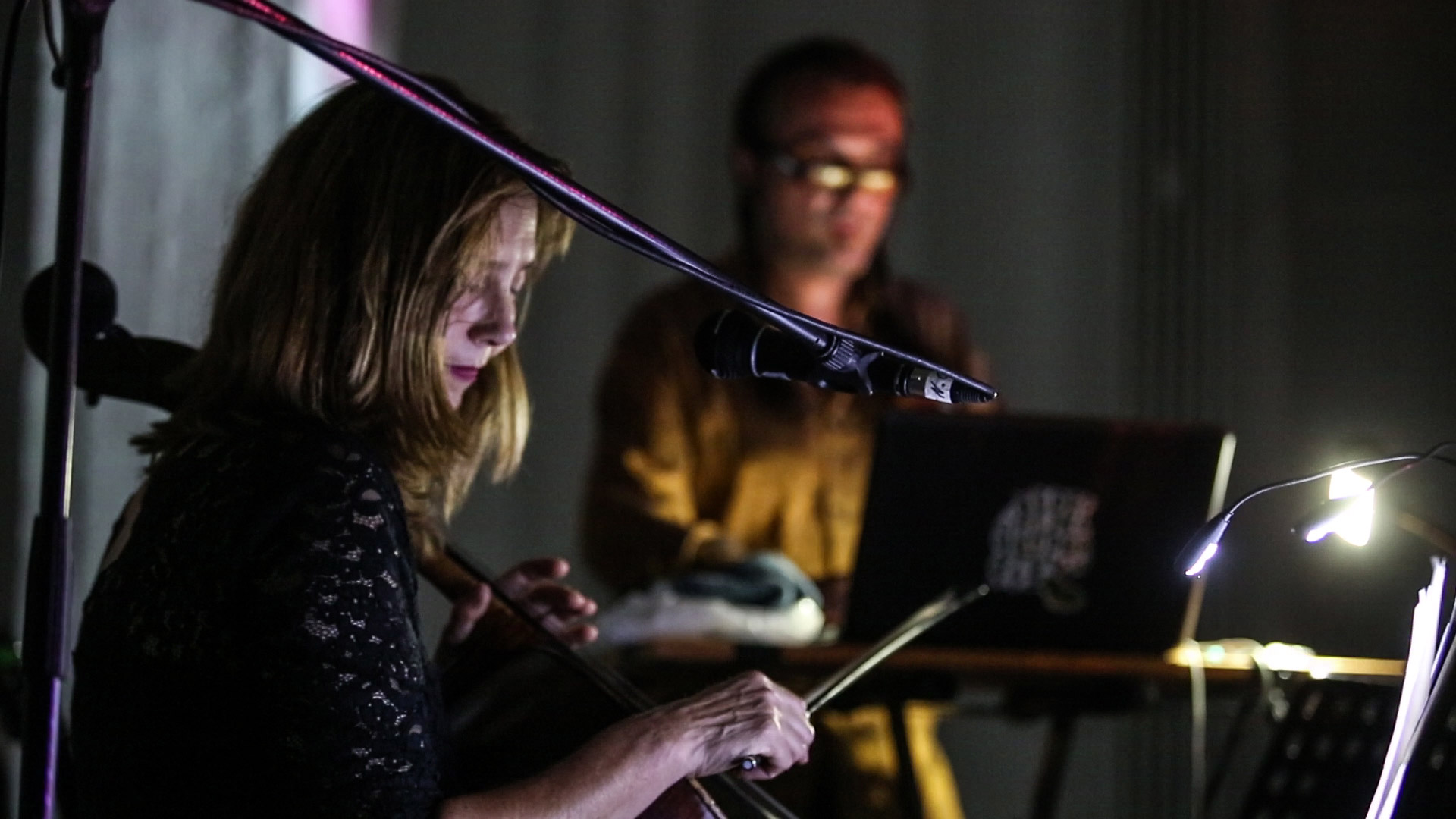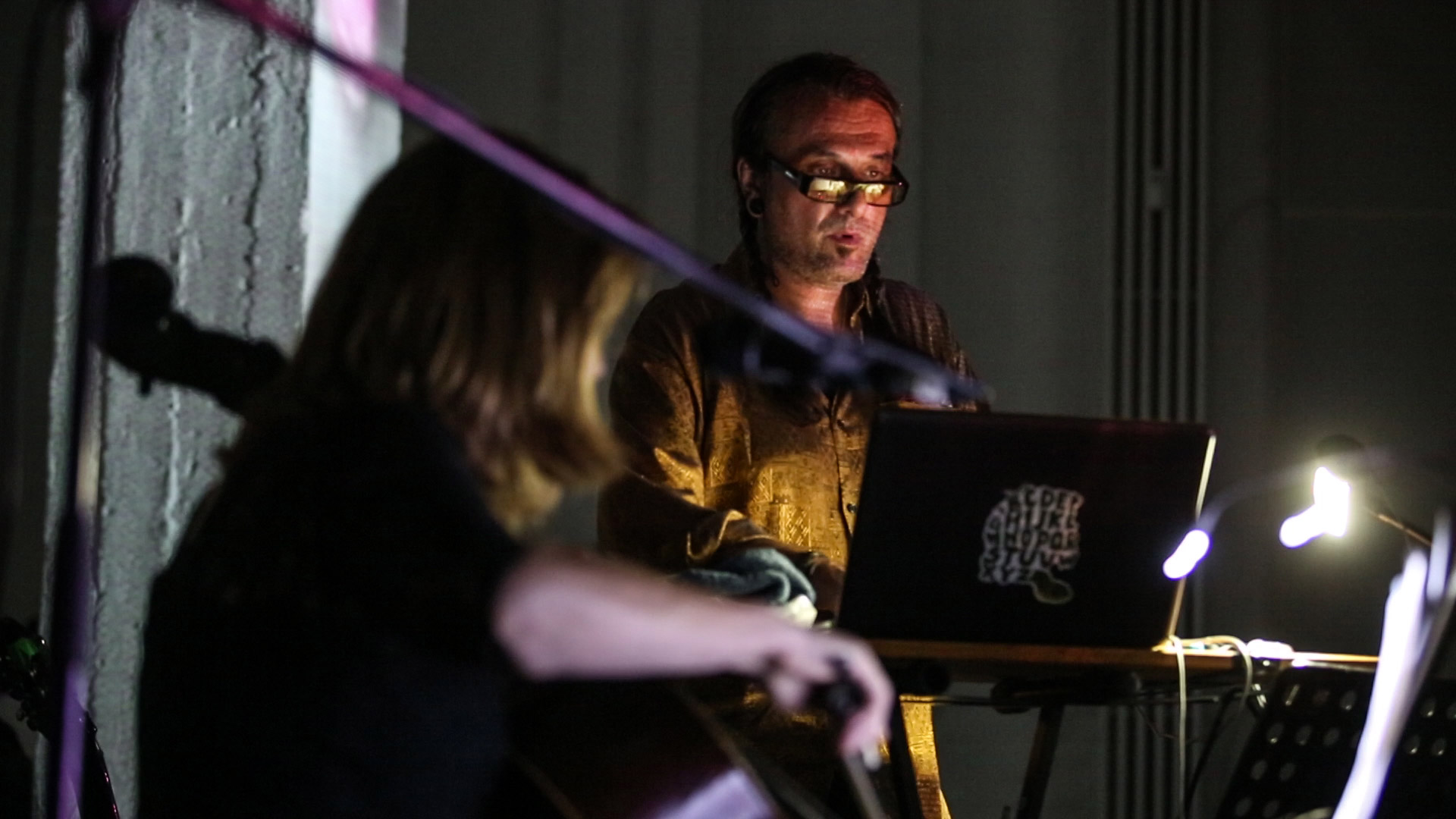 Marei Seuthe und Phil Reptil spielen hinter »Gertrud« im Rahmen von »Chamber Remix« in Köln, 9/2016