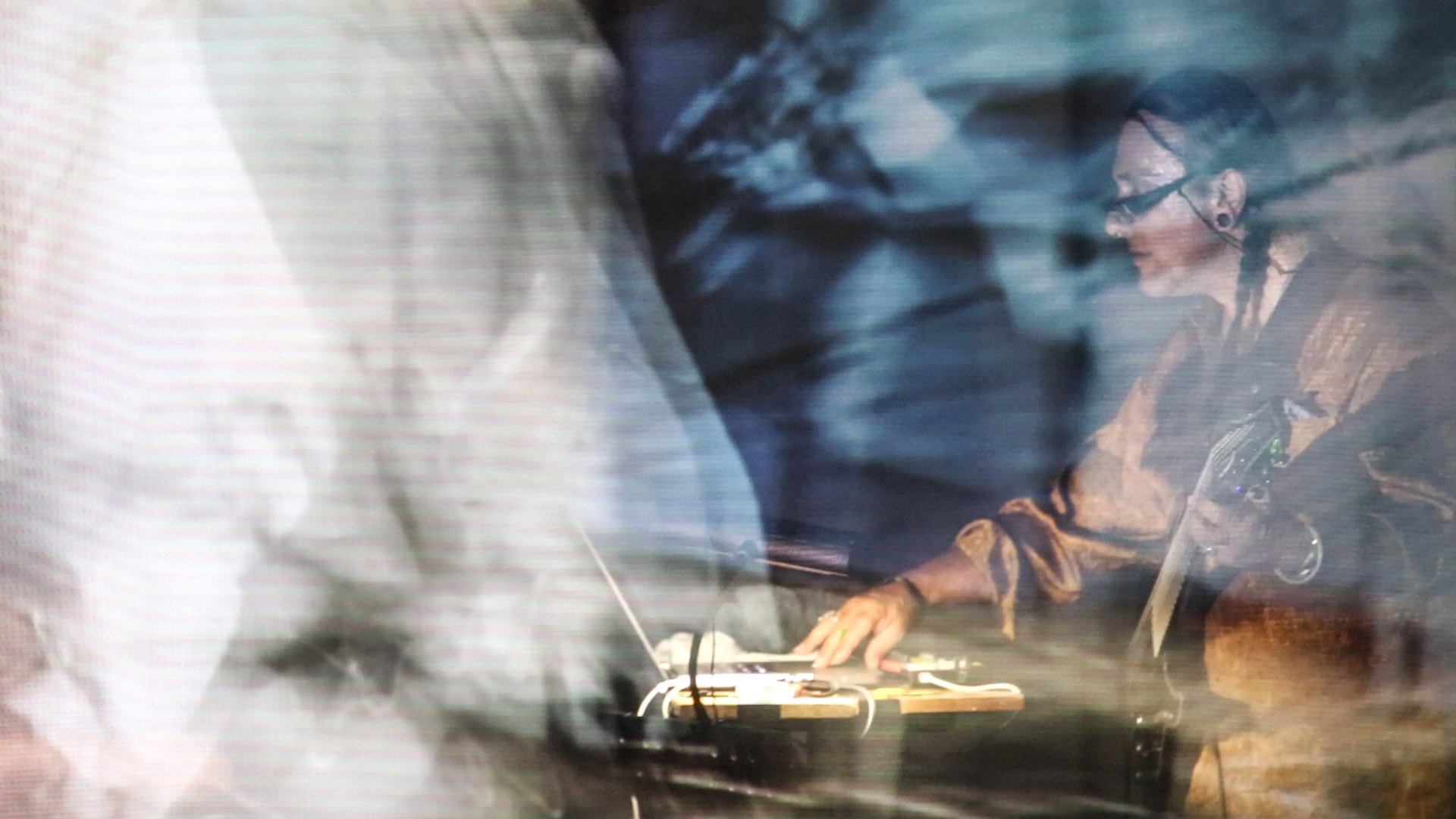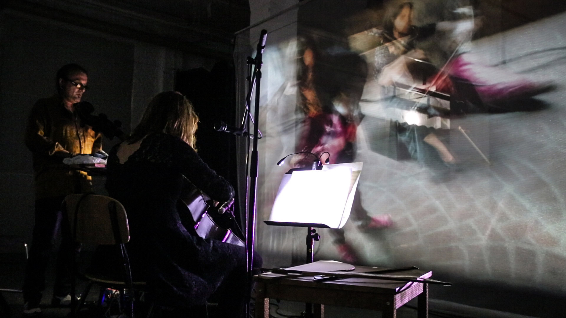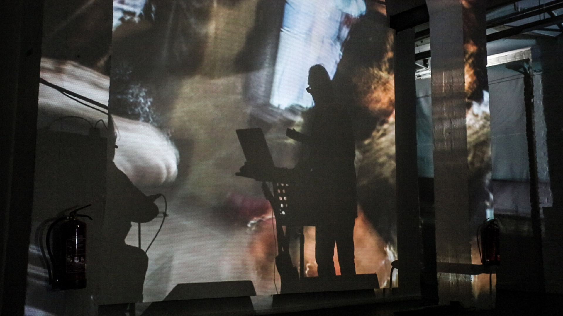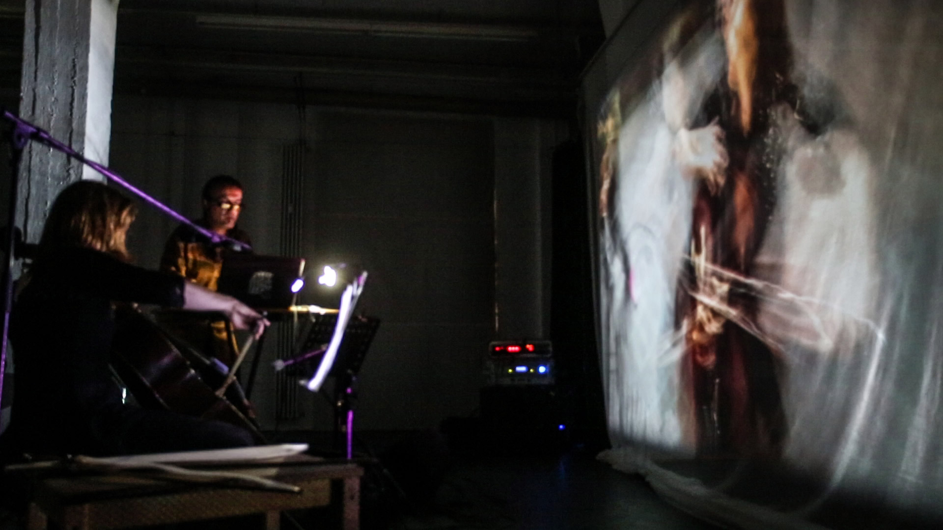 Marei Seuthe und Phil Reptil spielen hinter »Gertrud« im Rahmen von »Chamber Remix« in Köln, 9/2016