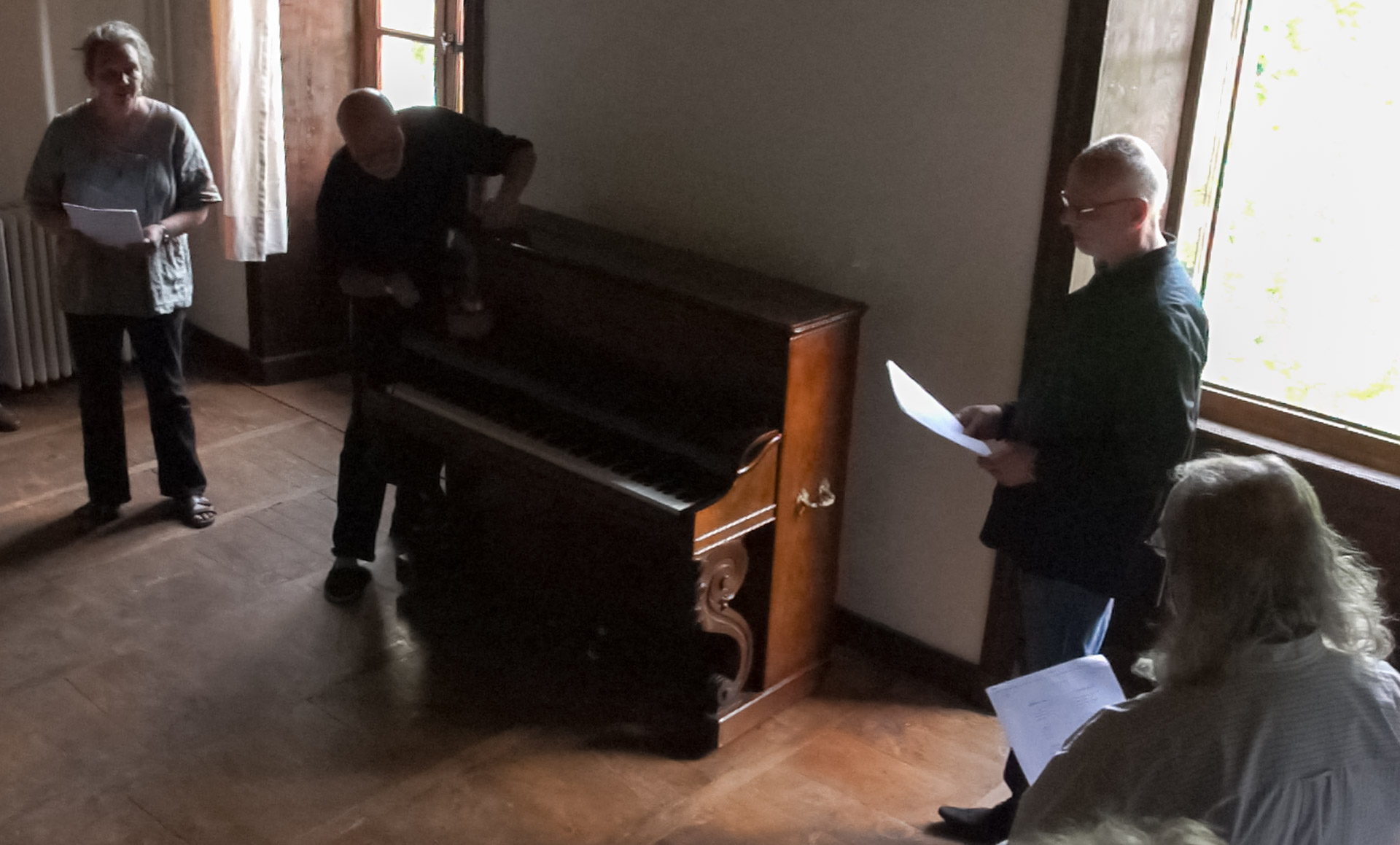 Im Juni 2018 haben wir, das trio27 – Vazo, Bonnen, Hölscher – gemeinsam im Kloster St. Croix in Südframkreich ausgestellt. Neben den bekannten Trio- und Duo-Werken, habe wir ganz neue Frottagen gezeigt und eine Komposition von Dietmar Bonnen aufgeführt, bei der Texte gesprochem wurden, die er tags zuvor geschrieben hat.