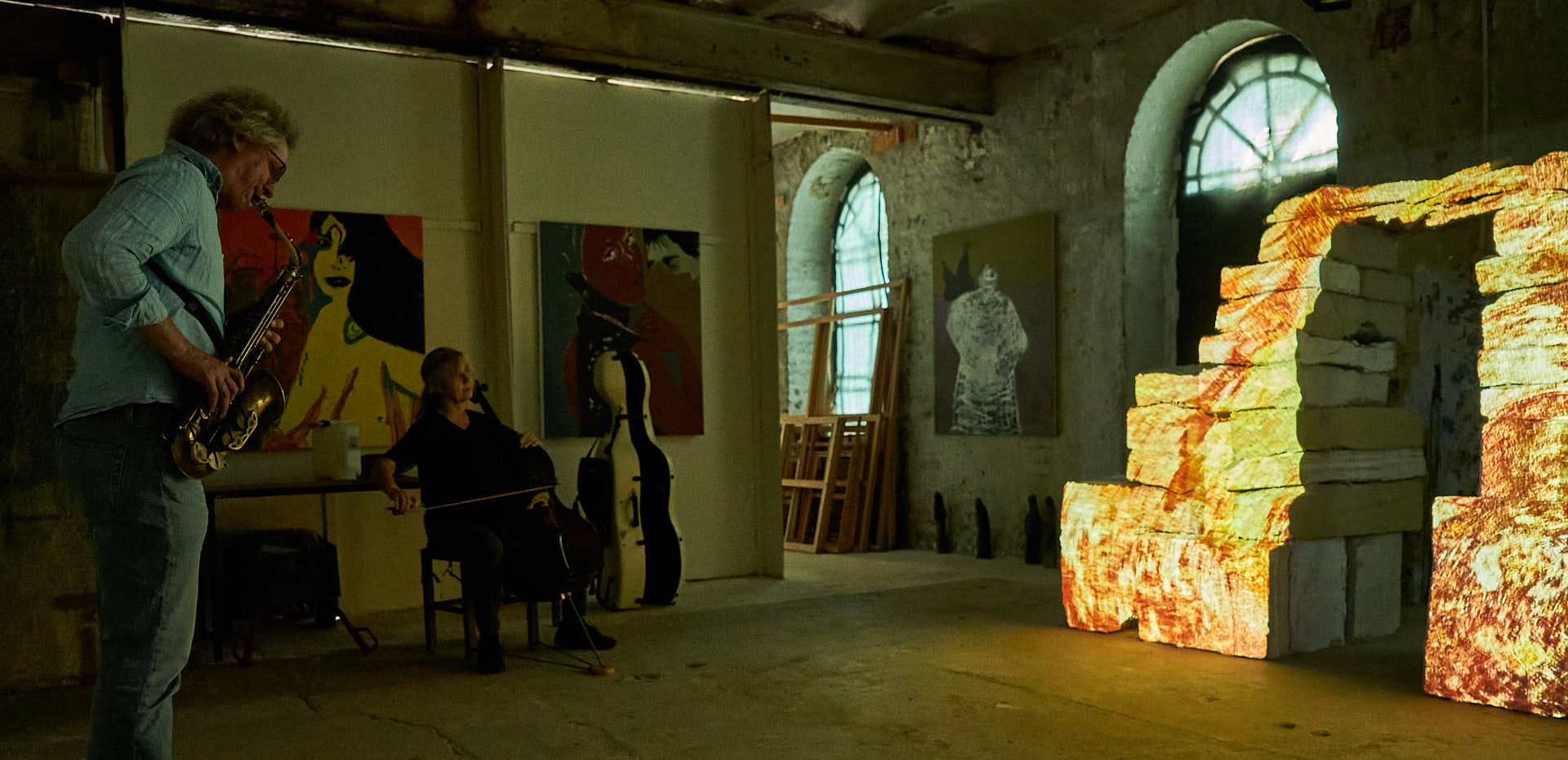 Roger Hanschel (sax) und Marei Seuthe (vc) haben zu dieser Installation ein Programm aus Stücken zusammengestellt, die sie eigens zu diesem Thema komponiert hatten.