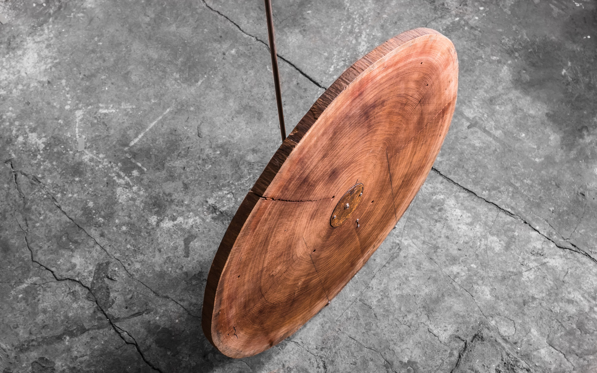 Die Baumscheibe ist der »Nachlass« meines Ateliernachbars Qi Yang in der Reuschenberger Mühle, der gleichzeitig mein Vormieter ist.