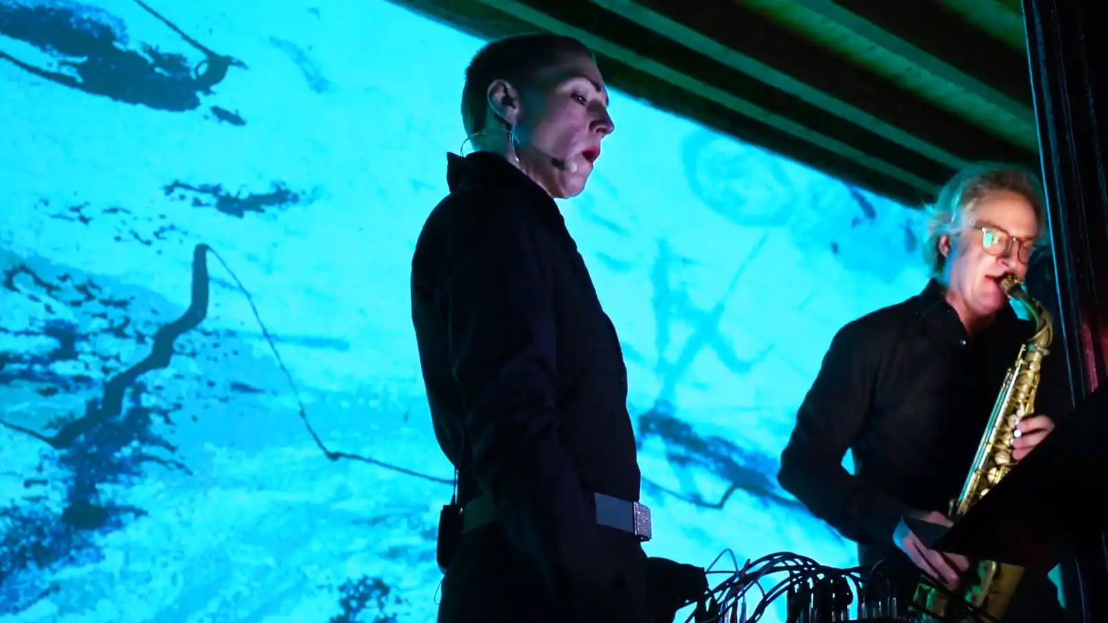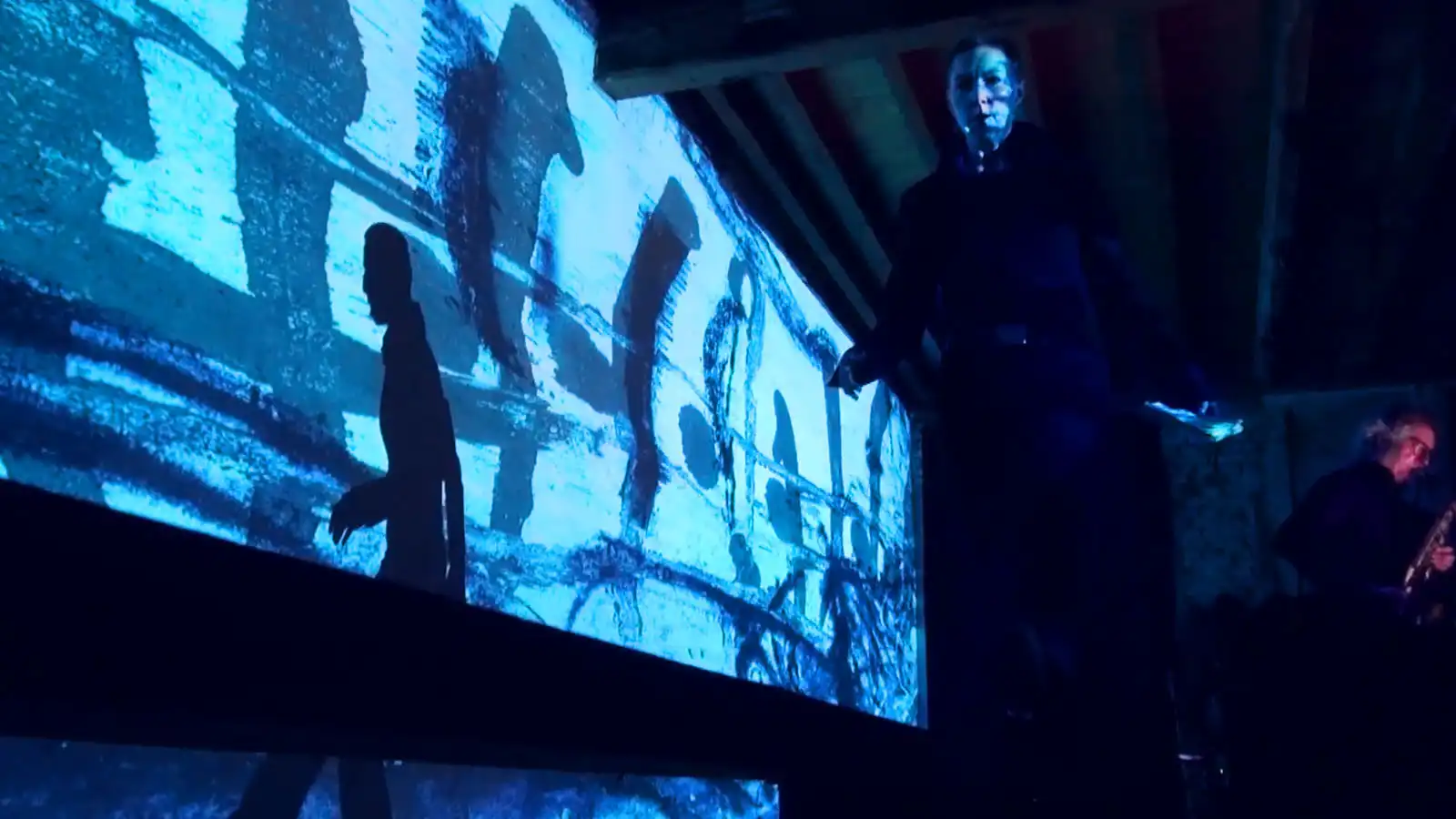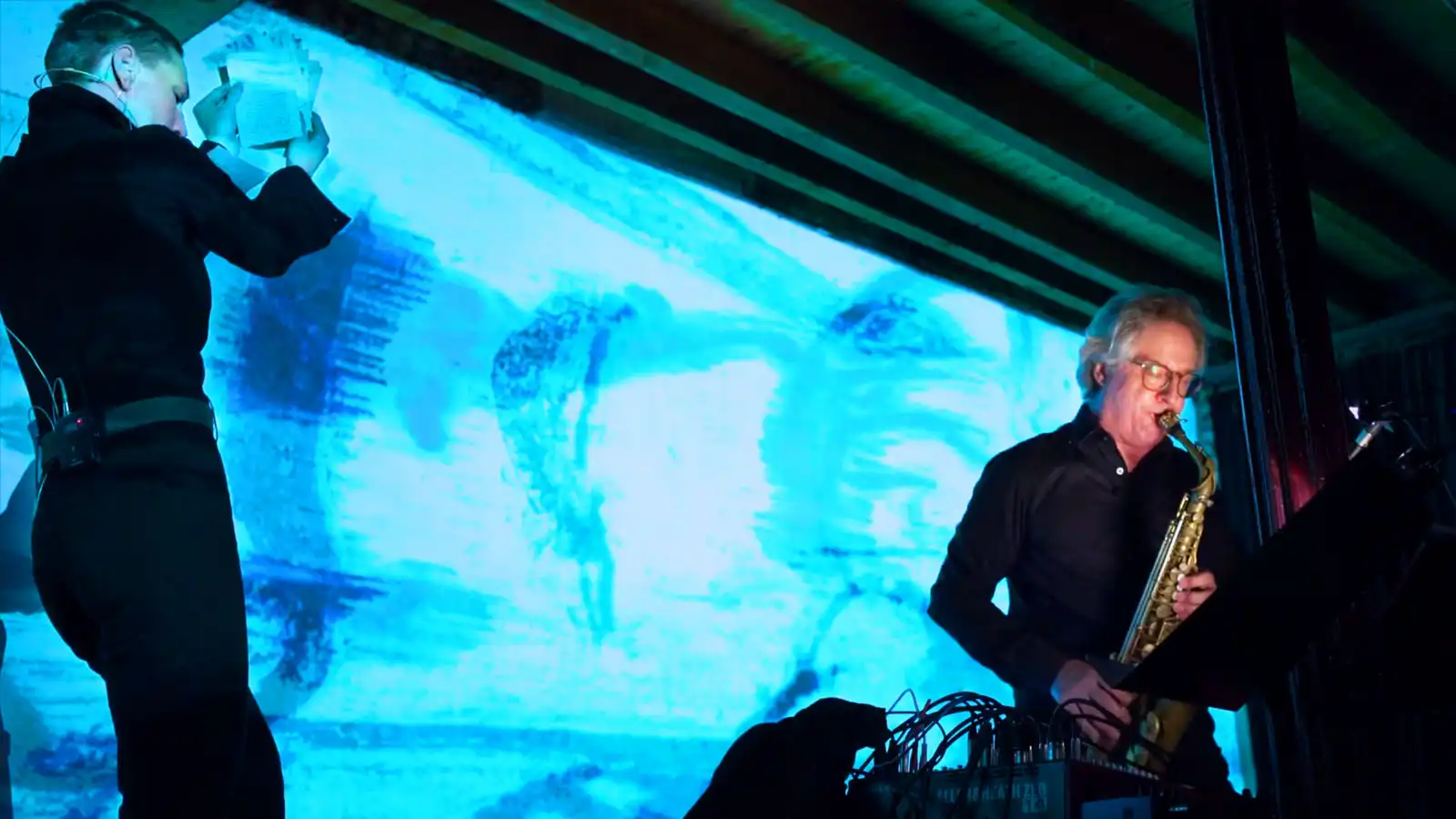 Im Dialog mit Barbara Schachtner entsteht eine Lautmalerei aus zum Teil elektronisch verfremdeten Stimmfarben, Worten, Bodysounds und polychromen Saxophonklängen. Was ist Stimme, was ist Instrument? Alles fließt zusammen in ein schwebendes Klangbild, reich an unerwarteten Sounds. Schließlich betritt Barbara Schachtner das Liquid Image in einem balancierenden Schattenspiel und lässt die bemalten Buchseiten durch das Bild wehen. So kehrt Artauds Werk auch physisch zurück in die Wahrnehmung der Betrachter.